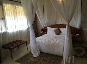 The hotel consists of 18 en-suite rooms (Budget, Standard, Family, Superior Twin & Deluxe and all rooms are equipped / furnished with air-conditioning, 4G WI-Fi, Cable TV (Dstv), mosquito nets, smoke detectors and facilities for making tea/coffee). The rooms are maintained in a clean, hygienic & secure condition. The interior decor depicts a delicate balance between Ugandan/ traditional charm and modern/luxurious comforts. The unique wooden carvings and sprawling greenery are a nod to the hotel’s small-town charm, while cozy breezy, rooms and terraces overlooking Lake Victoria and the Airport set the ideal scene for relaxation.